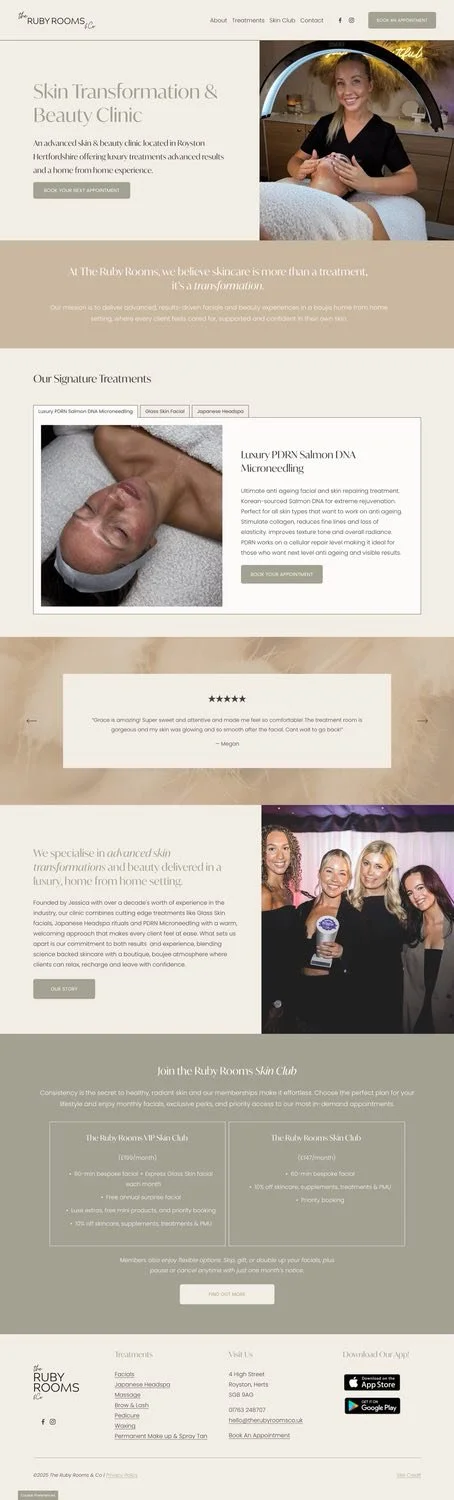 The Ruby Rooms is an advanced skin and beauty clinic based in Royston, Hertfordshire, offering luxury treatments, advanced results and a home-from-home experience. Their existing website was built on Squarespace 7.0 and no longer reflected their updated branding or the premium services they now offer.